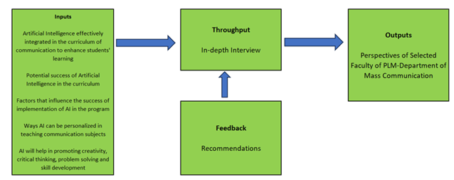 The researcher framework used the Open system theory by Hoy (2019). In the study the inputs were the Artificial Intelligence effectively integrated in the curriculum of communication to enhance students' learning, the potential success of Artificial Intelligence in the curriculum, factors that influence the success of implementation of AI in the program, Ways AI can be personalized in teaching communication subjects, and AI will help in promoting creativity, critical thinking, problem solving and skill development. The throughput is the In-depth Interview, and the outputs are the perspectives of selected faculty of PLM-Department of Mass Communication. 5. METHODOLOGY The researcher used qualitative research design. The research design used to have an in-depth description, understanding, and analysis of the faculty perspectives. A case study is a detailed examination of a specific situation or phenomenon, often used in research to gain a deeper understanding of a particular issue or problem. It typically involves a detailed analysis of a single case or a small number of cases, and the findings are used to draw broader conclusions or recommendations. An in-depth interview is a qualitative data collection method that involves a one-on-one conversation between the researcher and the participant. It is a flexible and interactive method that allows the researcher to explore the participant's thoughts, feelings, and experiences in detail. The study selected five key informants from PLM Department of Mass Communications. There are three full time faculty and two part-time faculty. They were one year to 15 years in the organization teaching communication subjects for Bachelor of Arts in Communication and Bachelor of Arts in Communication specializing in Public Relation. The study used first the narrative analysis. The narrative analysis is used to understand how research informants construct story and narrative from their own personal experience. That means there is a dual layer of interpretation in narrative analysis. First the research informants interpret their own lives through narrative. Then the researcher interprets the construction of that narrative. Narratives can be derived from journals, letters, conversations, autobiographies, transcripts of in-depth interviews, focus groups, or other types of narrative qualitative research and then used in narrative research. The study also used thematic analysis. It is a constant comparative method that involves reading and rereading the transcripts in a systematic way and looking for patterns to derive emerging themes. This consisted of basic approaches of analysis such as familiarization, coding, generating themes, reviewing, defining and naming and writing up Damyanov (2023). The thematic analysis steps are: 1.) familiarization. The first stage in thematic analysis is examining your data for broad themes. This is where you transcribe audio data to text., 2.) Look for themes in codes, uncovering subthemes and subdivisions of themes that concentrate on a significant or relevant component.,3.) Review themes. classified as a theme matches the data and whether it exists in the data.,4.) Finalize themes. Ensure the themes match the research questions. The final report must meet the research goals and objectives., lastly, 5.) Report writing. In report there are:1.) a starting, 2.) An approach, 3.)The results, 4.) Outcome. 6. RESULTS AND DISCUSSION The discussion is divided into two parts, namely: (1) narratives generated from the faculty perspectives of the in-depth interviews; and (2) themes generated from the codes of the interviews. An integration of the two parts is provided at the end of the discussion. Matrix 1