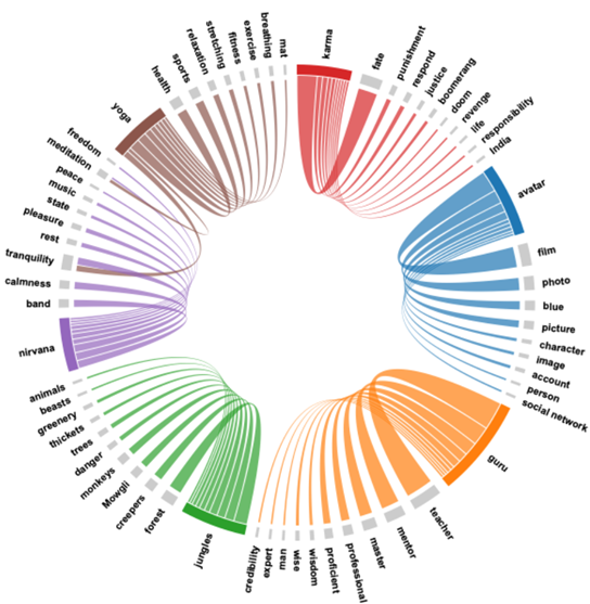 (perceived as charlatan), ‘yoga’ (as a hard workout exercise), ‘nirvana’ (as a