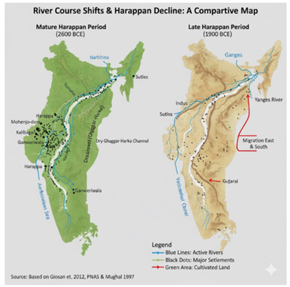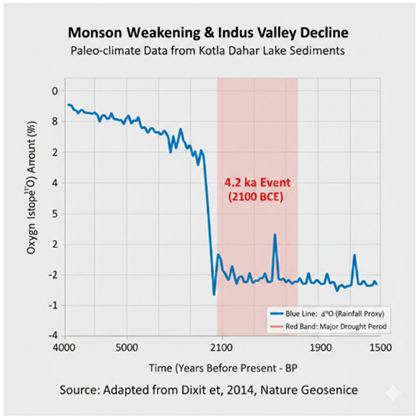 Trauma and Disease in the Ancient Indus Civilization. In B. B. Lal and S. P. Gupta (Eds.), Frontiers of the Indus civilization (425–436). Kenoyer, J. M. (1998). Ancient Cities of the Indus Valley Civilization. Oxford University Press. Lambrick, H. T. (1967). The Indus Flood-Plain and the “Indus” Civilization. The Geographical Journal, 133(4), 483–495. https://doi.org/10.2307/1794477 Madella, M., and Fuller, D. Q. (2006). Palaeoecology and the Harappan Civilisation: Monsoon Dynamics as a Critical Factor. Quaternary Science Reviews, 25, 2783–2801. https://doi.org/10.1016/j.quascirev.2005.10.012 Mughal, M. R. (1997). Ancient Cholistan: Archaeology and Architecture. Ferozsons. Petrie, C. A., et al. (2017). Adaptation to Variable Environments, Resilience to Climate Change: Investigating Land, Water and Settlement in Indus Northwest India. Current Anthropology, 58(1), 1–30. https://doi.org/10.1086/690112 Possehl, G. L. (2002). The Indus Civilization: A Contemporary Perspective. AltaMira Press. Raikes, R. L. (1965). The Mohenjo-Daro Floods. Antiquity, 39, 196–203. https://doi.org/10.1017/S0003598X00031860 Ratnagar, S. (2001). Understanding Harappa: Civilization in the Greater Indus Valley. Tulika Books. Sarkar, A., et al. (2016). Oxygen Isotope Evidence of Holocene Monsoon Variability and its Impact on the Indus Valley Civilization. Scientific Reports, 6, Article 26555. https://doi.org/10.1038/srep26555 Schug, G. R., et al. (2013). Infection, Disease, and Biosocial Processes at Harappa, Pakistan. PLOS ONE, 8(12), e84814. https://doi.org/10.1371/journal.pone.0084814 Singh, G., et al. (1974). Late Quaternary Plant Ecology and Climate Change in the Thar Desert. Philosophical Transactions of the Royal Society of London. Series B, Biological Sciences, 267(889), 467–501. https://doi.org/10.1098/rstb.1974.0006 Staubwasser, M., et al. (2003). Climate Change at the 4.2 ka BP Termination of the Indus Valley Civilization. Geology, 31(6), 533–536. https://doi.org/10.1029/2002GL016822 Thapar,